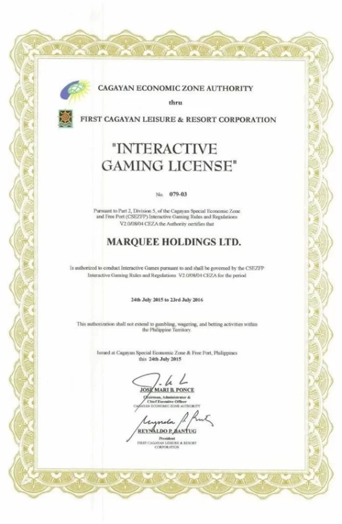 | Chứng nhận PAGCOR là chứng nhận về chất lượng và uy tín của nhà cái do Philippine cung cấp. Để đạt được chứng nhận này nhà cái TK88 cần phải đáp ứng đầy đủ về công nghệ cá cược và danh tiêng trong thị trường. Chứng nhận này giúp tăng độ tin cậy của casino đối với khách hàng |